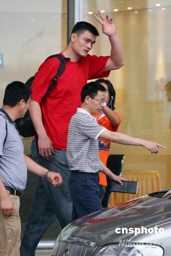 6月25日,姚明乘坐國航CA986航班從舊金山飛抵北京首都國際機場。姚明的回歸再次吸引了媒體的關注,這預示著中國男籃已經正式進入奧運備戰(zhàn)階段。 中新社發(fā) 富田 攝