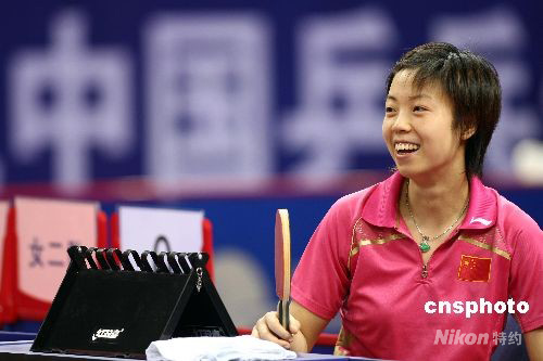 圖:張怡寧熱身賽前笑看隊(duì)友訓(xùn)練