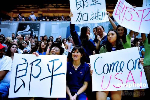 當?shù)貢r間7月31日,郎平和美國女排在加州大學伯克利分校的排球館做啟程赴北京前的最后熱身時,受邀和華人華僑球迷合影。郎平將率美國國家女排于美西時間8月1日從舊金山啟程赴中國參加2008年夏季奧林匹克運動會。美國國家女排目前在國際排名為第四位。在1984年和1992年的奧運會上,分別獲得銀牌和銅牌。中新社發(fā) 陳鋼 攝