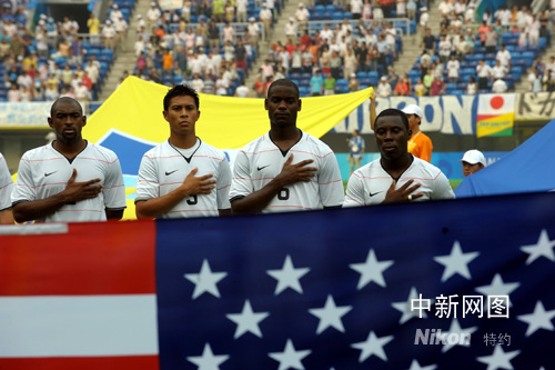 8月7日下午,奧運(yùn)男足小組賽在天津“水滴”體育場拉開戰(zhàn)幕,日本迎戰(zhàn)美國隊(duì)。中新社記者 陳文 攝