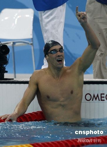 8月10日,美國選手菲爾普斯獲得北京奧運(yùn)會(huì)男子400米個(gè)人混合泳冠軍,菲爾普斯以4分3秒84打破了他個(gè)人保持的男子400米個(gè)人混合泳世界紀(jì)錄,這是北京奧運(yùn)會(huì)上的第一項(xiàng)世界紀(jì)錄。