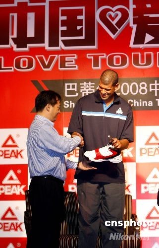 圖:巴蒂爾向中國(guó)籃球博物館贈(zèng)送戰(zhàn)靴