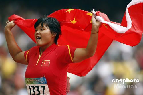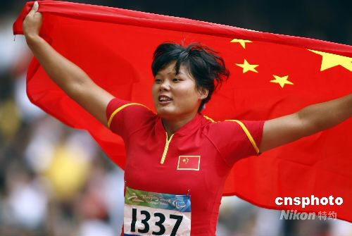9月8日,北京殘奧會田徑比賽在北京國家體育場“鳥巢”進行首日比賽,中國選手姚娟在女子標槍比賽中獲得殘奧田徑首枚金牌,并打破該項目世界紀錄。中新社發(fā) 杜洋 攝