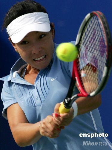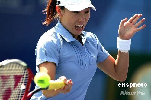 9月25日,2008年中國(guó)網(wǎng)球公開賽繼續(xù)進(jìn)行,女單賽場(chǎng)碩果僅存的中國(guó)金花鄭潔僅用時(shí)69分鐘就以6-1,6-2橫掃日本老將杉山愛,昂首挺進(jìn)女單8強(qiáng)。鄭潔很可能在4分之1決賽中與2號(hào)種子塞爾維亞美少女伊萬諾維奇狹路相逢。中新社發(fā) 富田 攝