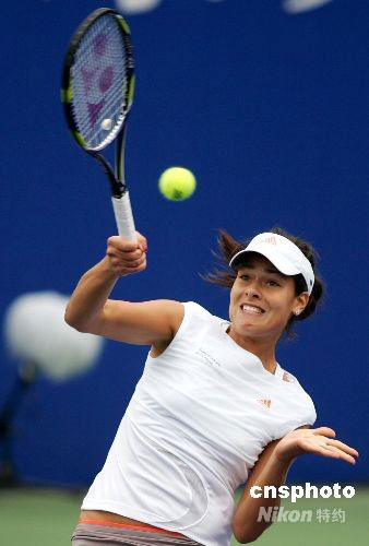 9月25日,總獎(jiǎng)金額為60萬美元的中國網(wǎng)球公開賽繼續(xù)第4日角逐。在女單第2輪爭(zhēng)奪中,2號(hào)種子塞爾維亞美少女伊萬諾維奇走出低谷,戰(zhàn)勝法國公主科內(nèi)特,挺進(jìn)女單8強(qiáng)。伊萬諾維奇女單1/4決賽中的對(duì)手將是中國金花鄭潔。中新社發(fā) 富田 攝