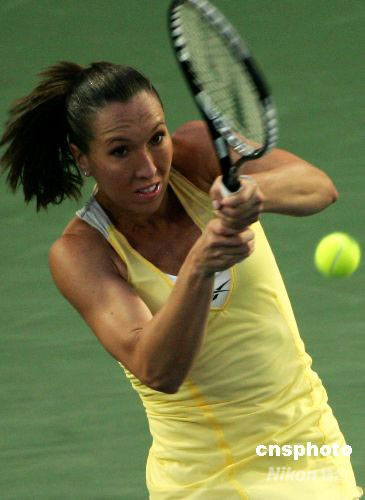 9月27日,2008年中國網(wǎng)球公開賽開始女單半決賽爭奪。頭號種子塞爾維亞美女揚(yáng)科維奇以6-4、2-6、6-4的比分戰(zhàn)勝俄羅斯紅粉5號種子茲沃娜列娃,率先晉級決賽。中新社發(fā) 富田 攝