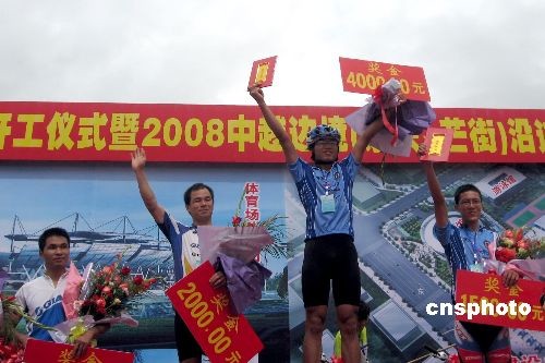 11月2日,首屆中越邊境(東興—芒街)沿邊自行車邀請賽在廣西東興沿邊公路舉行。此次邀請賽共有77名參賽選手,其中越南籍選手18人。今次比賽從廣西東興市體育館出發(fā),途經(jīng)晚清和越南法國殖民當(dāng)局劃界所立的“一號(hào)界碑”,全程25公里。中新社發(fā) 袁鶯 攝