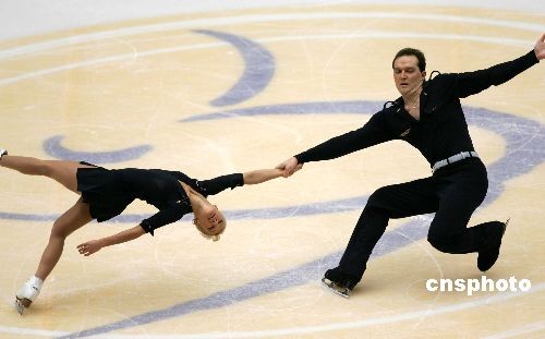 11月7日,2008/09賽季花樣滑冰大獎(jiǎng)賽中國(guó)站比賽,在北京首都體育館結(jié)束了第二天的爭(zhēng)奪。在壓軸進(jìn)行的雙人自由滑比賽中,中國(guó)組合張丹/張昊順利摘得金牌,烏克蘭搭檔沃洛佐扎/莫洛佐夫獲得亞軍,中國(guó)另一對(duì)選手龐清/佟健排名第三。圖為烏克蘭選手沃洛佐扎/莫洛佐夫在比賽中做托舉動(dòng)作。中新社發(fā) 富田 攝