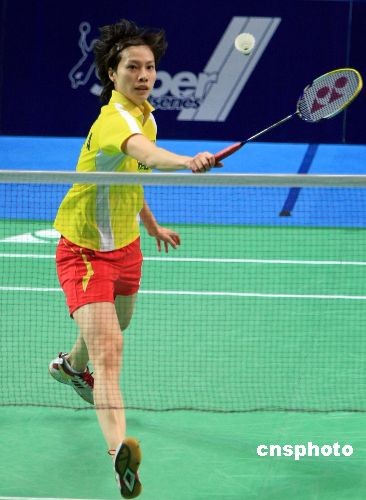11月19日,在上海舉行的2008年中國羽毛球公開賽展開正賽首輪爭奪,中國名將謝杏芳以2比0輕取日本選手后藤愛,順利晉級(jí)。中新社發(fā) 湯彥俊 攝