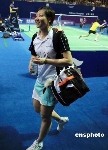 11月21日,在上海進(jìn)行的2008年中國羽毛球公開賽女子單打1/4決賽中,現(xiàn)世界排名第一、香港選手周蜜以0比2不敵中國小將朱晶晶,無緣四強。中新社發(fā) 湯彥俊 攝