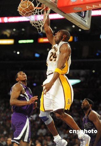 當地時間十一月二十三日晚,NBA洛杉磯湖人隊在主場迎戰(zhàn)薩克拉門托國王隊。最終湖人隊以一百一十八比一百零八擊敗國王隊,迎來四連勝,國王遭遇兩連敗。科比此役得到二十四分和六次助攻。中新社發(fā) 張煒 攝