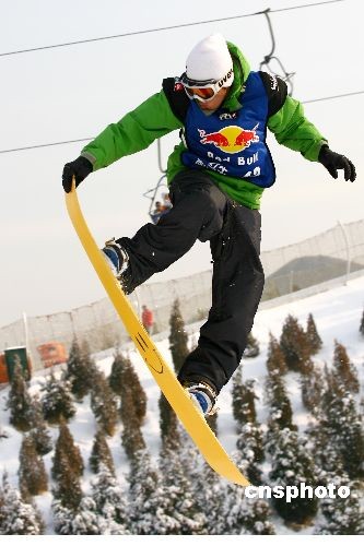 12月28日,第七屆紅牛南山滑雪公開賽在北京南山滑雪場(chǎng)展開資格爭(zhēng)奪,中國(guó)近40位單板滑雪高手激烈角逐,最后將有三位勝出的選手在明年一月與世界頂級(jí)選手一較高下。中新社發(fā) 富田 攝