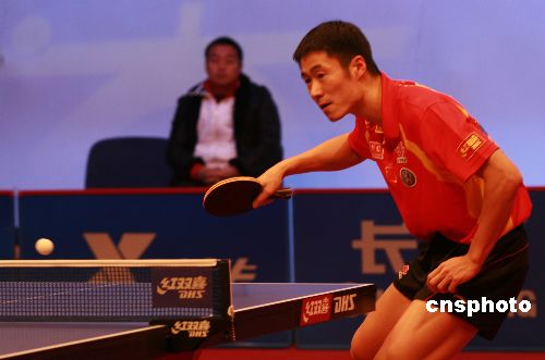 1月11日,在長沙舉行的第三屆“世界乒乓球總冠軍賽”男單半決賽中,中國選手王勵勤以4比3艱難逆轉(zhuǎn),闖入決賽,將與衛(wèi)冕冠軍王皓爭奪本屆總冠軍賽的男單冠軍。中新社發(fā) 鄧霞 攝