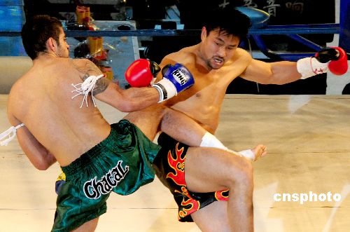 1月17日晚,在“武林風”第三屆環(huán)球拳王爭霸賽在河南洛陽舉行。環(huán)球拳王爭霸賽是河南電視臺和日本富士電視臺合作主辦的一項大型中外武術(shù)交流活動。中新社發(fā) 高山岳 攝