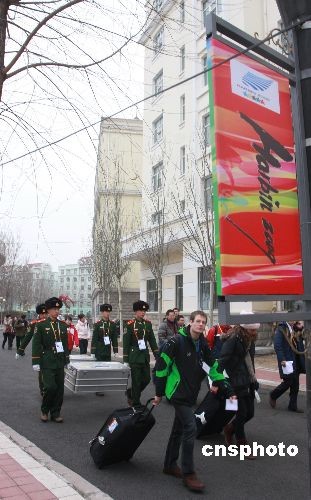 2月12日,黑龍江哈爾濱市,來此參加大冬會(huì)的德國代表團(tuán)成員進(jìn)入大冬會(huì)運(yùn)動(dòng)員村。當(dāng)日,第24屆世界大學(xué)生冬季運(yùn)動(dòng)會(huì)黑龍江大學(xué)運(yùn)動(dòng)員村迎來首批客人。中新社發(fā) 王忠言 攝