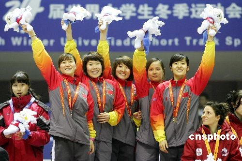 2月23日,第24屆大冬會短道速滑比賽全部結(jié)束,在女子3000米接力比賽的爭奪中,中國隊?wèi){借著強(qiáng)大的實力,以4分07秒119順利奪冠,此前已經(jīng)奪取500米和1000米金牌的劉秋宏,順利成為三冠王。中新社發(fā) 富田 攝