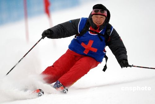 2月24日,在大冬會亞布力滑雪場高山滑雪大回轉(zhuǎn)比賽中,大冬會醫(yī)療救護(hù)隊(duì)隨時(shí)出擊。圖為醫(yī)療救護(hù)隊(duì)馳騁在雪道上。中新社發(fā) 姚庭山 攝