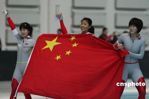 2月26日,大冬會(huì)速度滑冰女子團(tuán)體追逐賽,中國(guó)隊(duì)以3分07秒38獲得冠軍。中新社發(fā) 王忠言 攝