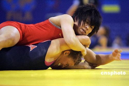 3月21日上午,由國際摔跤聯(lián)合會主辦,中國摔跤協(xié)會、太原市政府、山西省體育局承辦的“2009年女子摔跤世界杯比賽”將于今日在太原拉開戰(zhàn)幕。在進(jìn)行的小組賽第一輪中,奧運(yùn)冠軍王嬌領(lǐng)銜的中國隊(duì)以總比分5:2戰(zhàn)勝日本隊(duì),贏得開門紅。中新社發(fā) 張?jiān)?攝
