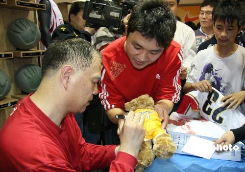 3月22日,中南六省首家NBA品牌店在長(zhǎng)沙開業(yè),它將為NBA迷們帶來(lái)各類原裝的NBA產(chǎn)品。當(dāng)天在店內(nèi)購(gòu)買商品的顧客得到籃球顧問張衛(wèi)平的親筆簽名和籃球技術(shù)指導(dǎo)。中新社發(fā) 鄧霞 攝