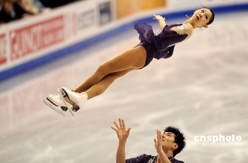 當(dāng)?shù)貢r(shí)間三月二十五日晚,在二00九年花樣滑冰世界錦標(biāo)賽雙人滑決賽中,中國(guó)選手張丹/張昊獲得亞軍。中新社發(fā) 張煒 攝
