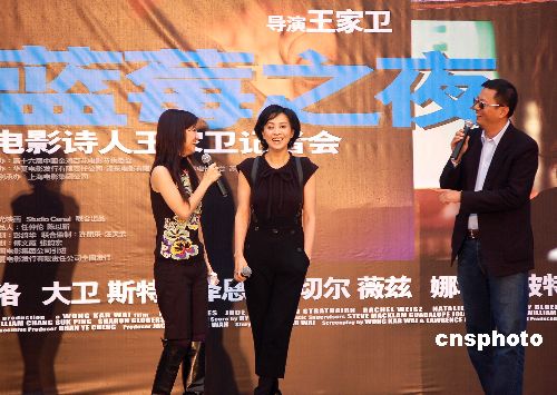 10月25日,第十六屆中國金雞白花電影節(jié)系列活動(dòng)之“藍(lán)莓之夜——電影詩人王家衛(wèi)導(dǎo)演記者會(huì)”在美麗的金雞湖畔舉行。香港著名導(dǎo)演、編劇及監(jiān)制王家衛(wèi)攜首部外語片《藍(lán)莓之夜》蒞臨現(xiàn)場,作為第十六屆金雞百花電影節(jié)娛樂形象大使的劉嘉玲也來為王家衛(wèi)導(dǎo)演助陣,為本屆電影節(jié)增添璀璨星光。中新社發(fā) 邱勇 攝