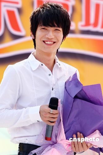 10月28日,超女厲娜和快男陳楚生在南寧參加中國—東盟博覽會為某汽車品牌的新車首發(fā)式作宣傳,厲娜和陳楚生為到場的觀眾各獻上三首歌曲,厲娜還臨時客串了一把車模。中新社發(fā) 駱文剛 攝