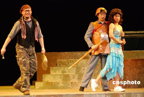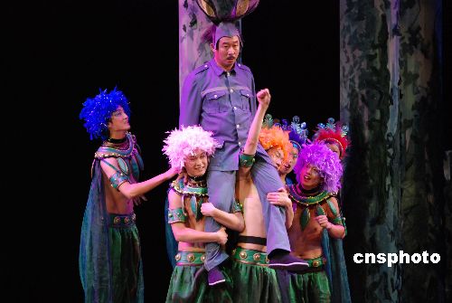11月2日晚,莎士比亞名劇《仲夏夜之夢》“搞笑”版在北京上演,該劇由梁伯龍執(zhí)導,著名演員印小天、史可、劉樺、蘇醒、蔣小涵、郭彪用現(xiàn)代的造型和語言,輕松幽默地演繹了一出現(xiàn)代搞笑版的《仲夏夜之夢》,F(xiàn)場笑聲不斷,不過演員們表示:“既然是演莎士比亞的戲劇,還是要排成一個具有古典色彩的戲劇,再怎么好看爆笑也不能像是小品或是鬧劇,而是一出踏踏實實、演員真正得到鍛煉的主流喜劇!敝行律绨l(fā) 李學仕 攝