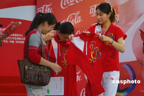 11月11日下午,奧運冠軍郭晶晶現(xiàn)身廣州市越秀區(qū)英雄廣場,參加“廣東省可口可樂火炬手候選人揭曉暨郭晶晶見面會”,見證廣東16名可口可樂奧運火炬手候選人的誕生,并和市民一起,為廣東火炬手加油。中新社發(fā) 呂明 吳呂明 攝