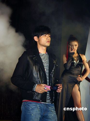 臺(tái)灣藝人周杰倫在臺(tái)北亮相,為某品牌的手機(jī)代言。中新社發(fā) 陳國(guó)華 攝
