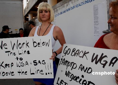 美國(guó)編劇協(xié)會(huì)在金球獎(jiǎng)現(xiàn)場(chǎng)抗議示威