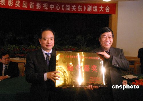 1月31日,山東省委、省政府在濟(jì)南召開表彰大會(huì),對(duì)《闖關(guān)東》劇組通令嘉獎(jiǎng),并向山東電影電視劇制作中心頒發(fā)獎(jiǎng)金200萬元。據(jù)悉,《闖關(guān)東》在央視一套播出后,收視率創(chuàng)央視開年大戲的新高。中新社發(fā) 龔輝 攝