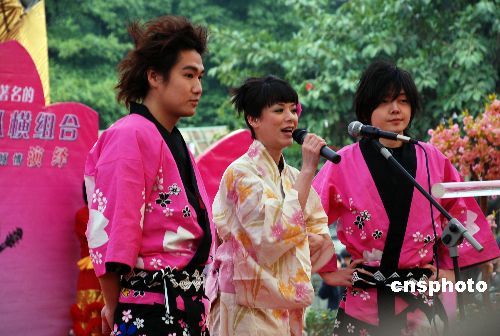 圖為日本著名偶像組合范姜明月@涉谷縱橫在櫻花節(jié)上表演。以“億萬櫻花舞羊城”為主題的首屆廣州櫻花文化節(jié)2月4日至3月23日在廣州雕塑公園舉行。這是目前國內(nèi)規(guī)模最大、持續(xù)時(shí)間最長、最具特色的櫻花文化節(jié)。屆時(shí),將有12000多棵櫻花在雕塑公園相繼綻放。為烘托節(jié)日氣氛,這次的櫻花主要以紅色、粉紅色為主。中新社發(fā) 袁宏偉 攝