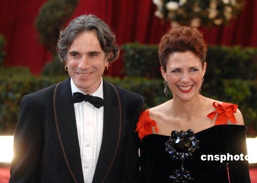圖:奧斯卡影帝丹尼爾·戴-劉易斯攜妻走過紅地毯