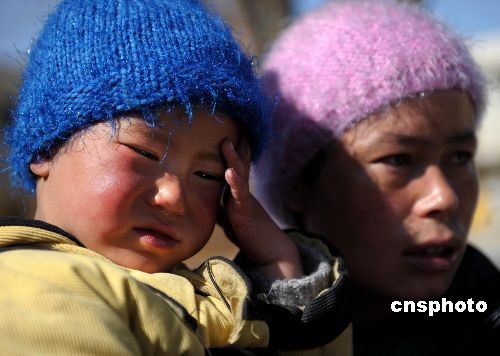 在拉薩市救助站內(nèi)接受救助的一對母女。