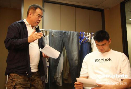 由陳凱歌執(zhí)導(dǎo),姚明擔(dān)綱主角的抗震救災(zāi)公益宣傳片日前在美國休斯敦開機(jī),圖為導(dǎo)演陳凱歌為姚明“說戲”。據(jù)介紹,該公益宣傳片,是《2008分之1》公益短片行動(dòng)的特別巨獻(xiàn),旨在宣揚(yáng)中華民族不屈不撓,在災(zāi)難面前頑強(qiáng)奮斗的偉大精神,預(yù)計(jì)7月初在SMG旗下包括東方衛(wèi)視在內(nèi)的各大頻道以及中國內(nèi)地其它各省市級(jí)電視臺(tái)播出。中新社發(fā) 王鵑 攝