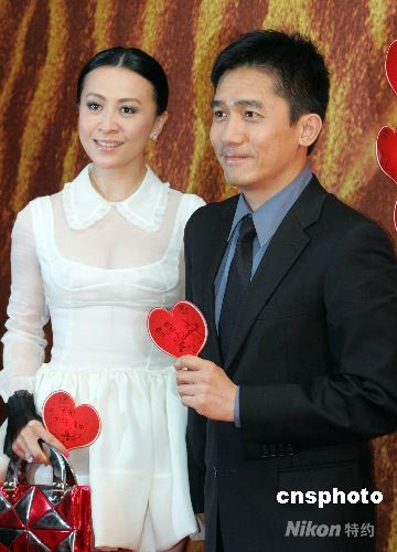 6月21日晚,梁朝偉攜手劉嘉玲在上海出席《東邪西毒》終極版慈善首映,向四川災(zāi)區(qū)獻(xiàn)出自己的愛(ài)心,本場(chǎng)電影的票房將悉數(shù)捐給四川災(zāi)區(qū)。中新社發(fā) 湯彥俊 攝