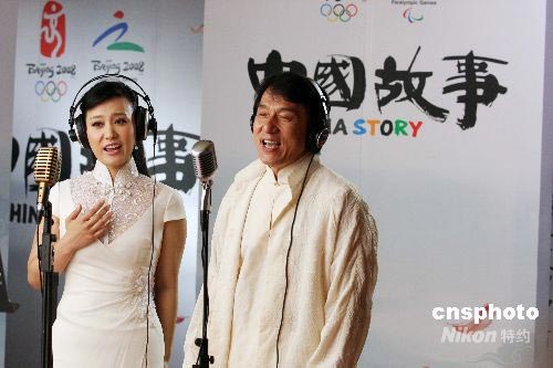 2008年7月8日,北京,2008奧林匹克公園中心區(qū)文化展示活動“中國故事”的主題歌《中國看見》正式發(fā)布。此歌由國際巨星成龍與著名歌唱家譚晶攜手演唱。中新社發(fā) 博芽影像 攝