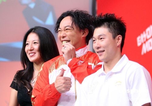 8月28日,香港歌手陳奕迅在北京舉行“EASON’S MOVING ON STAGE 14世界巡回北京演唱會”新聞發(fā)布會,宣布將于9月28日在工人體育場舉行首場北京個人演唱會。奧運金牌選手李小鵬、楊揚以歌迷身份現(xiàn)身發(fā)布會向陳奕迅贈送特別禮物。中新社發(fā) 廖文靜 攝