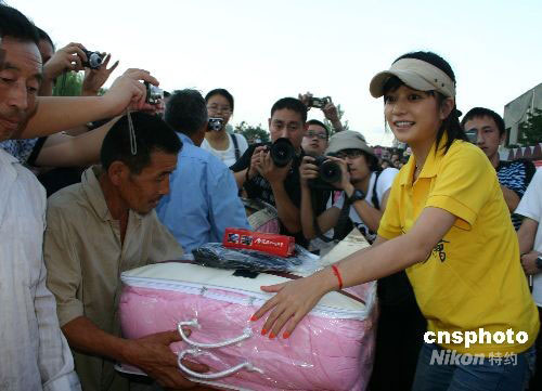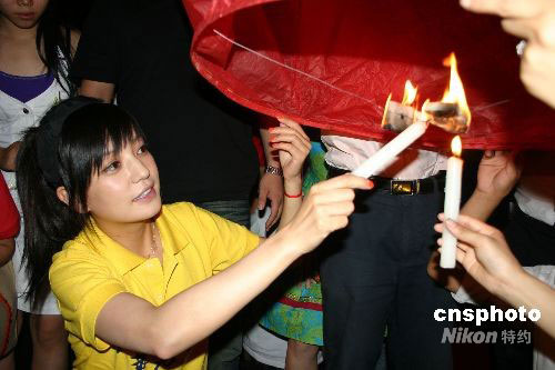 9月10日,由香港華光功德會(huì)組織的“情系四川——中秋月餅暖萬心慰問活動(dòng)”在綿陽拉開序幕,當(dāng)晚,影視明星趙薇在與災(zāi)區(qū)學(xué)生歡聚的中秋晚會(huì)上,點(diǎn)燃孔明燈,為四川祈福。中新社發(fā) 霍潺 攝