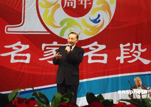 12月14日,梅蘭芳之子梅葆玖先生攜葉少蘭、李維康、孟廣祿、李宏圖等眾多京劇名家齊聚河北石家莊,參加京劇名家名段演唱會。中新社發(fā) 翟羽佳 攝
