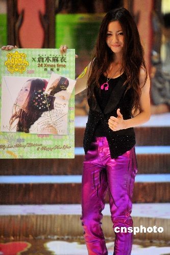 卡通片《名偵探柯南》的原唱者日本樂壇小天后倉(cāng)木麻衣,二十五日在香港出席商場(chǎng)舉行的新碟《24 Xmas time》簽唱會(huì)。中新社發(fā) 譚達(dá)明 攝