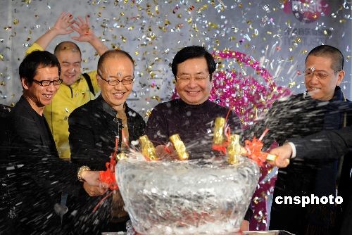 十二月二十七日,陳其鋼、曾慶淮、陳丹青等揮錘砸爛冰制鳥巢,取出《我和你》珍藏版專輯正式發(fā)布。陳其鋼是北京奧運會開幕式音樂總設(shè)計,北京奧運會開幕式主題曲《我和你》的作者。中新社發(fā) 廖攀 攝