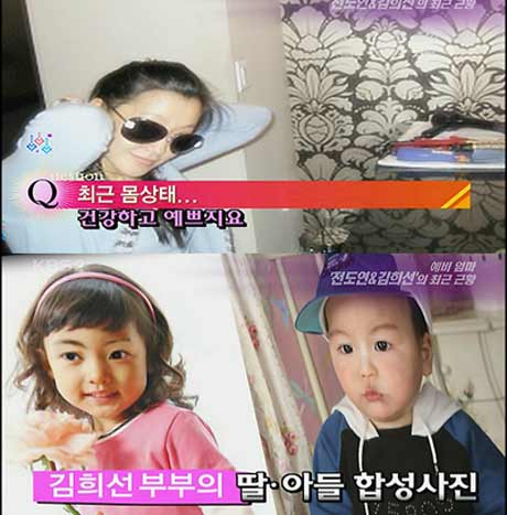 預(yù)產(chǎn)期在09年1月的金喜善近期被頻頻曝光,不光有好友在博客里面公開(kāi)了她的最新照片,婆婆更對(duì)媒體表示將有個(gè)小孫女。日前,韓國(guó)網(wǎng)絡(luò)上還出現(xiàn)了號(hào)稱“金喜善未來(lái)寶寶模樣”的相關(guān)合成照。
