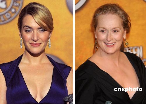 第八十一屆奧斯卡金像獎(jiǎng)將于當(dāng)?shù)貢r(shí)間二月二十二日晚揭曉。從前哨戰(zhàn)績(jī)來(lái)看,美國(guó)老牌女影星梅麗爾·斯特里普(Meryl Streep,右)與如日中天的英國(guó)新生代女影星凱特·溫斯萊特(Kate Winslet,左)將領(lǐng)銜影后之爭(zhēng)。中新社發(fā) 張煒 攝