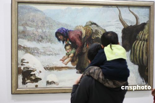 4月5日,武漢市民在湖北省藝術(shù)館欣賞中國美術(shù)館館藏精品!伴L風(fēng)萬里西部情——中國美術(shù)館館藏精品展”正在湖北省藝術(shù)館展出,114件國家級美術(shù)藏品首次亮相武漢。該展由湖北省藝術(shù)館與中國美術(shù)館共同主辦,是文化部支持西部的重要文化活動之一。該展此前曾在陜西、上海、廈門展出,武漢的展覽到4月26日結(jié)束。中新社發(fā) 孫新明 攝