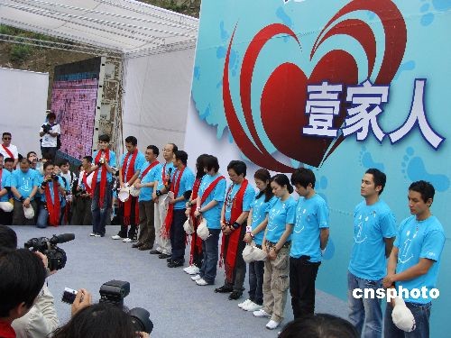 2009年5月10日,在“5·12”汶川大地震震中映秀鎮(zhèn),李連杰攜吳彥祖、林心如、鐘麗緹、柯以敏、鐘漢良、沈星、張杰等眾多明星義工,開展中國紅十字會壹基金主辦的“壹家人,壹起走”大型戶外援建災區(qū)公益活動。來自各地的300多名媒體記者、志愿者和明星們一同走完了2公里的災區(qū)路。在半小時的路程中,完成了李連杰成立緊急救援聯(lián)盟等許多心愿,眾明星們的表現(xiàn)令人感動。 壹基金是由國際巨星李連杰發(fā)起的立足于中國的國際性公益組織,分別在中國大陸及香港地區(qū)、美國和新加坡設立了辦事機構。在中國大陸地區(qū),壹基金與中國紅十字總會合作,成立了“計劃”,致力于傳播公益文化,搭建公益平臺,以推動全國公益事業(yè)的發(fā)展。中新社發(fā) 善平 攝