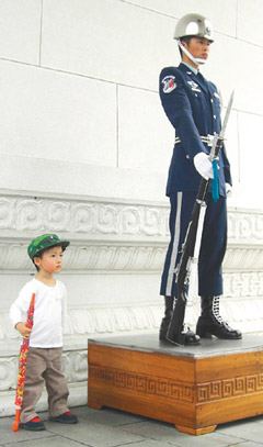 以后如果在“中山紀念館”、忠烈祠或慈湖看到衛(wèi)兵旁邊站著一個小朋友,有模有樣地耍槍,那可能就是小小禮兵Ryan。