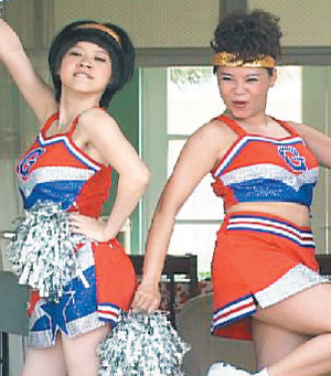 林韋君看著鏡中的自己,忍不住用“檳榔西施”口吻問大家說:“偶這樣漂亮嗎?”無獨有偶,阿寶曾寶儀在戲劇《倪亞達(dá)》中也犧牲形象和僅雯穿拉拉隊服,為“立委”選舉拉票。