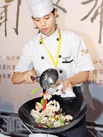 為推廣杭州美食,杭州市餐飲旅店行業(yè)協(xié)會已經(jīng)連續(xù)兩年赴臺舉辦“杭州-臺灣美食文化節(jié)”。繼去年在臺北圓山飯店造成轟動之后,今年移師到臺中金典酒店,原汁原味呈現(xiàn),當(dāng)中許多食材都是直接從杭州運到臺灣,甚至連烹調(diào)的特殊食材、黃酒、茶葉等,都是原裝。